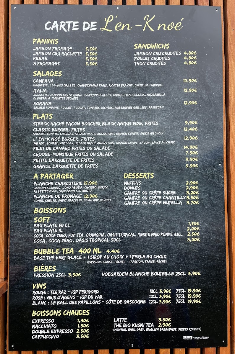 With consistently positive reviews highlighting its friendly service and inviting atmosphere, L'en-K noé is not just a snack bar—it's a must-visit culinary stop for anyone seeking a memorable dining experience.